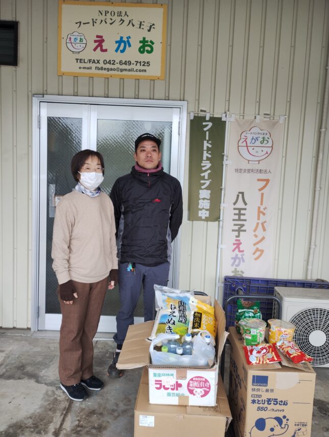 フードバンク八王子えがおから、八王子市市役所相談窓口へ食品を提供しています。