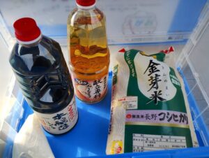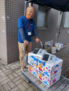 みなさまから約63kgにのぼる食品を寄付していただきました。またお金を寄付してくださった方もありました。まことにありがとうございました。心より感謝申し上げます。このような機会と場所を設けてくださった川口やまゆり住民協議会のみなさま、食品やお金を寄付してくださったみなさま、ほんとうにありがとうございました。