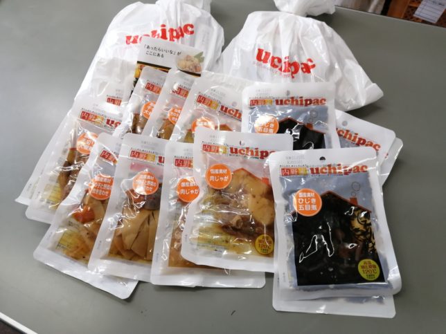 午前中は、(株)キューピーあい様より、たくさんのレトルト食品や飲料などいただきました。