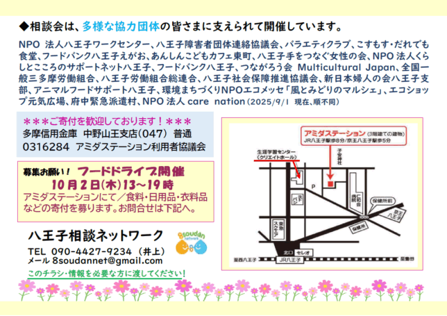 問い合せはチラシ記載の「八王子相談ネットワーク」までお願いします。