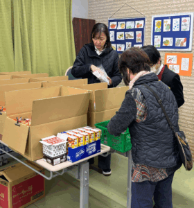 加えて多くの協力企業様(生活協同組合コープみらい 、 (株)スーパーアルプス、イオントップバリュー(株)、 明治ホールディングス(株)、(株)幸田商店、関東生乳販売農業協同組合連合会)から食品を寄贈していただいて実施することができました。全国フードバンク推進協議会様が企業様との橋渡しをしてくださることも大きな力になっています。